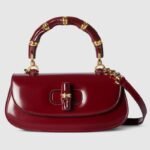 In the Spring Summer 2025 collection, this small top handle bag reinterprets the signature bamboo hardware with resin and brass details. Gucci Bamboo Diva is the starring feature for any look.