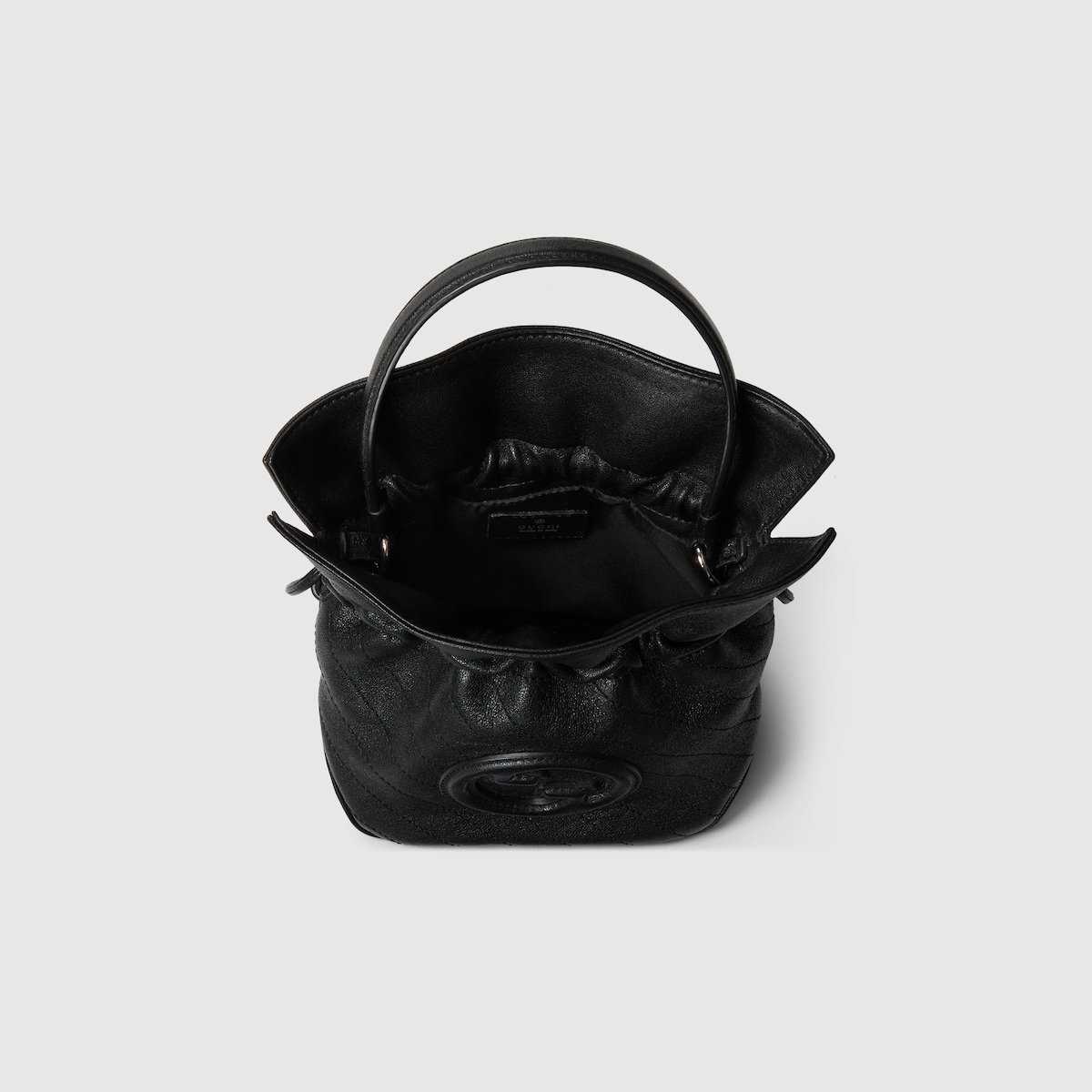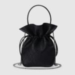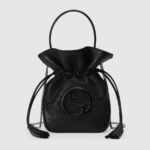 A bold motif of the House, the Gucci Blondie continues to exude subtle style, thanks to its tonal leather appearance. Formed from a rounded geometric version of the Interlocking G, the line exemplifies Gucci’s contemporary design. The logo detail defines this mini bucket bag in black leather with tassel details.