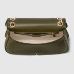 The new Gucci Blondie bag, whose distinctive logo first appeared in the House’s collections in the early 1970s, weaves together past and present in a fusion of nostalgia and modernity. This small shoulder bag is crafted from dark green suede, featuring the House’s round symbol in enamel. The gold-toned chain and leather strap can be worn on the shoulder or crossbody.