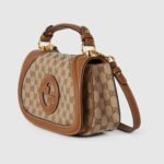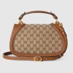 The new Gucci Blondie bag, whose distinctive logo first appeared in the House’s collections in the early 1970s, weaves together past and present in a fusion of nostalgia and modernity. Presented in beige and ebony GG canvas with a smooth brown leather trim, this small bag is complete with a top handle and adjustable shoulder strap.