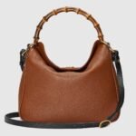 Combining recognizable elements of the House, the small shoulder bag is defined by its bamboo handles and Double G hardware. Crafted from brown leather, the accessory is further accentuated a tonal leather shoulder strap.