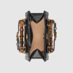 An evolution of a bamboo handle tote first introduced in 1991, the Gucci Diana represents the notion of style in constant evolution and is reimagined with removable, neon leather belts—a nod to the functional bands used to keep the handles in shape. Here, a mini version of the emblematic style is presented in black leather.