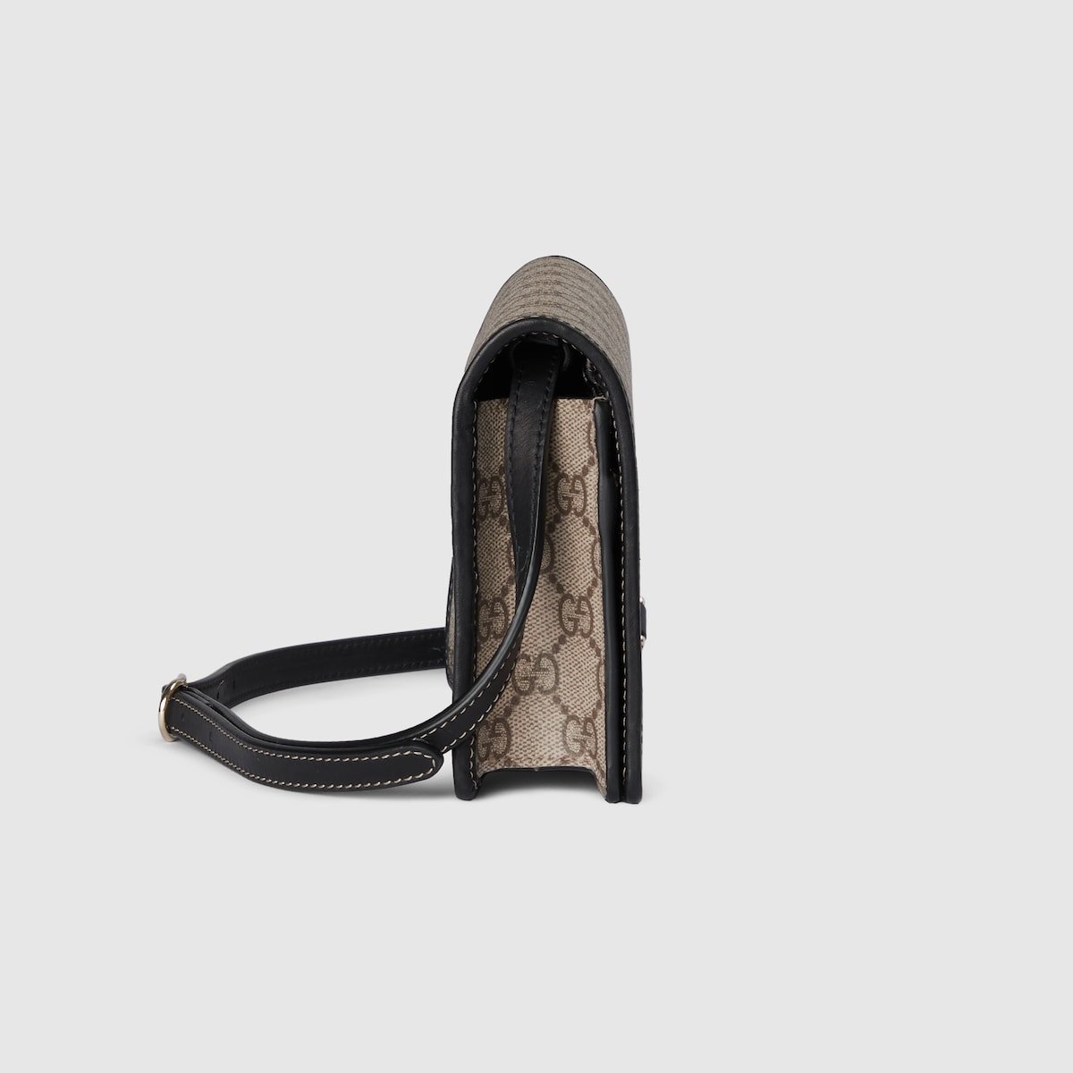 The GG Emblem collection reinterprets signature motifs through creativity and innovative functions , and is envisioned to be cherished for years to come. Introduced in the latest line of small accessories, this beige and dark brown super mini shoulder bag is crafted from the new GG Monogram fabric. Featuring multiple compartments, it also features the D-ring for attachments.