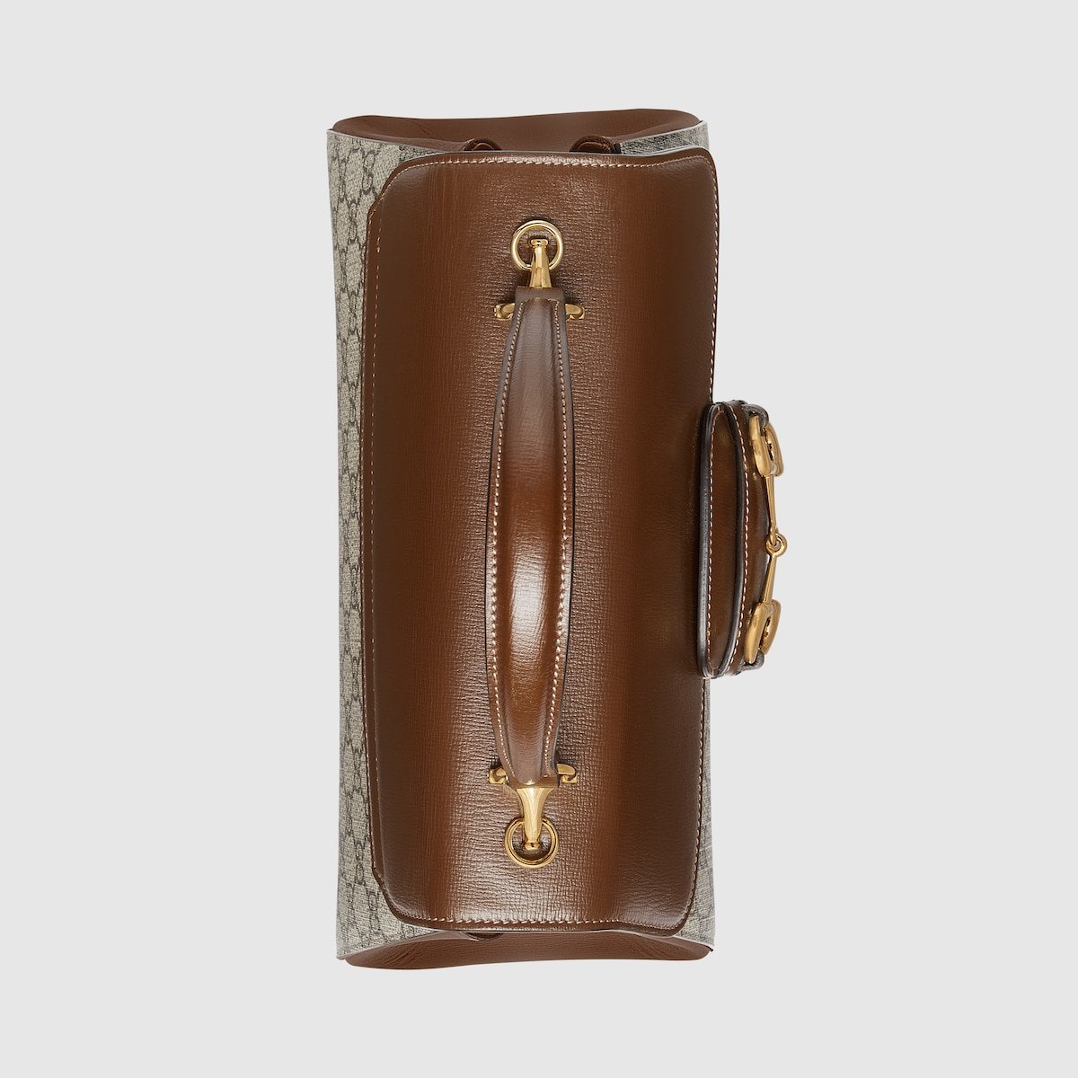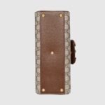 The Gucci Horsebit 1955 is introduced in beige and ebony GG Supreme canvas and a medium size. The collection unifies details first introduced on the original bag that inspired the line from over six decades ago with a modern spirit, highlighting the Horsebit. Part of Gucci’s genetic code, the double ring and bar design has been established as one of the most distinctive elements among the House symbols borrowed from the equestrian world. A brown leather trim completes the style with an elevated feel.
