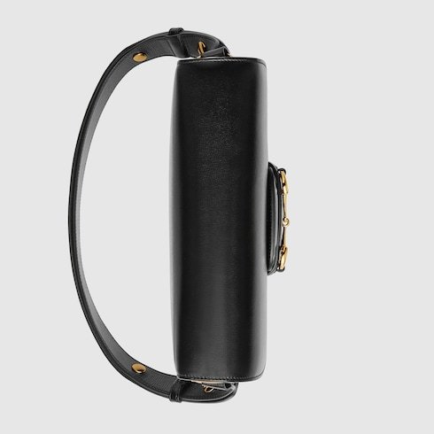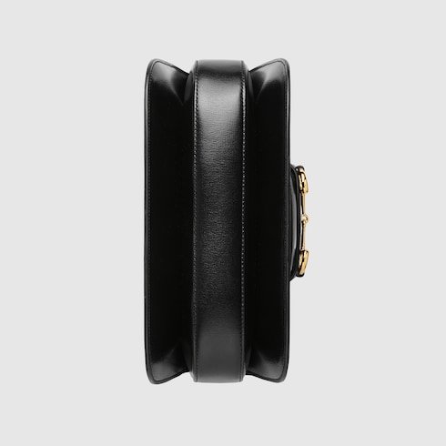 Introduced for Cruise 2020, the Gucci Horsebit 1955 bag is recreated from an archival design. With the same lines and forms first introduced over six decades ago, the accessory unifies the original details with a modern spirit, highlighting the Horsebit. Part of Gucci’s genetic code, the double ring and bar design has been established as one of the most distinctive elements among the House symbols borrowed from the equestrian world. Presented on a small flap shoulder bag, the hardware is paired with textured black leather and completed with a special mechanism that adjusts the length of the shoulder strap so it can be carried on one shoulder or cross body. Pieces with versatile ways to wear and style embrace each person who is part of the House’s individual spirit.