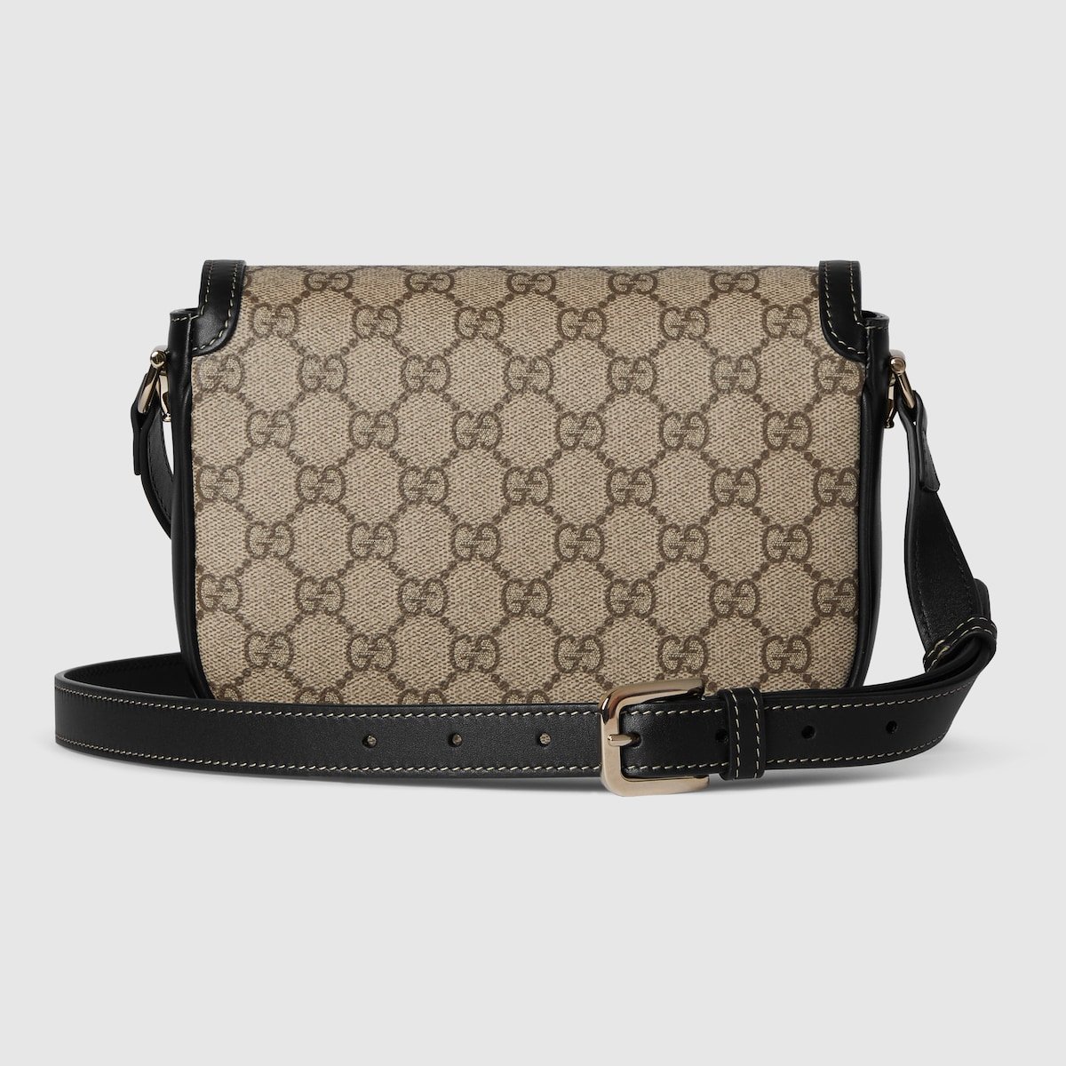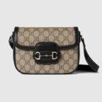 The Gucci Horsebit 1955 Soft continues its equestrian-inspired design with the double ring and bar hardware, blending light gold-toned details and GG Monogram coated fabric, with a soft and sophisticated feel, on this mini shoulder bag.