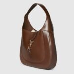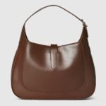 In the Spring Summer 2024 collection, the Gucci Jackie shoulder bag features premium fine leather which highlights the craftsmanship, crescent shape, and sleek silhouette of the House’s iconic shoulder bag. Light gold-toned hook closure, leather trim, and an additional green and red Web strap gives this Gucci Jackie medium shoulder bag in brown leather further styling options.