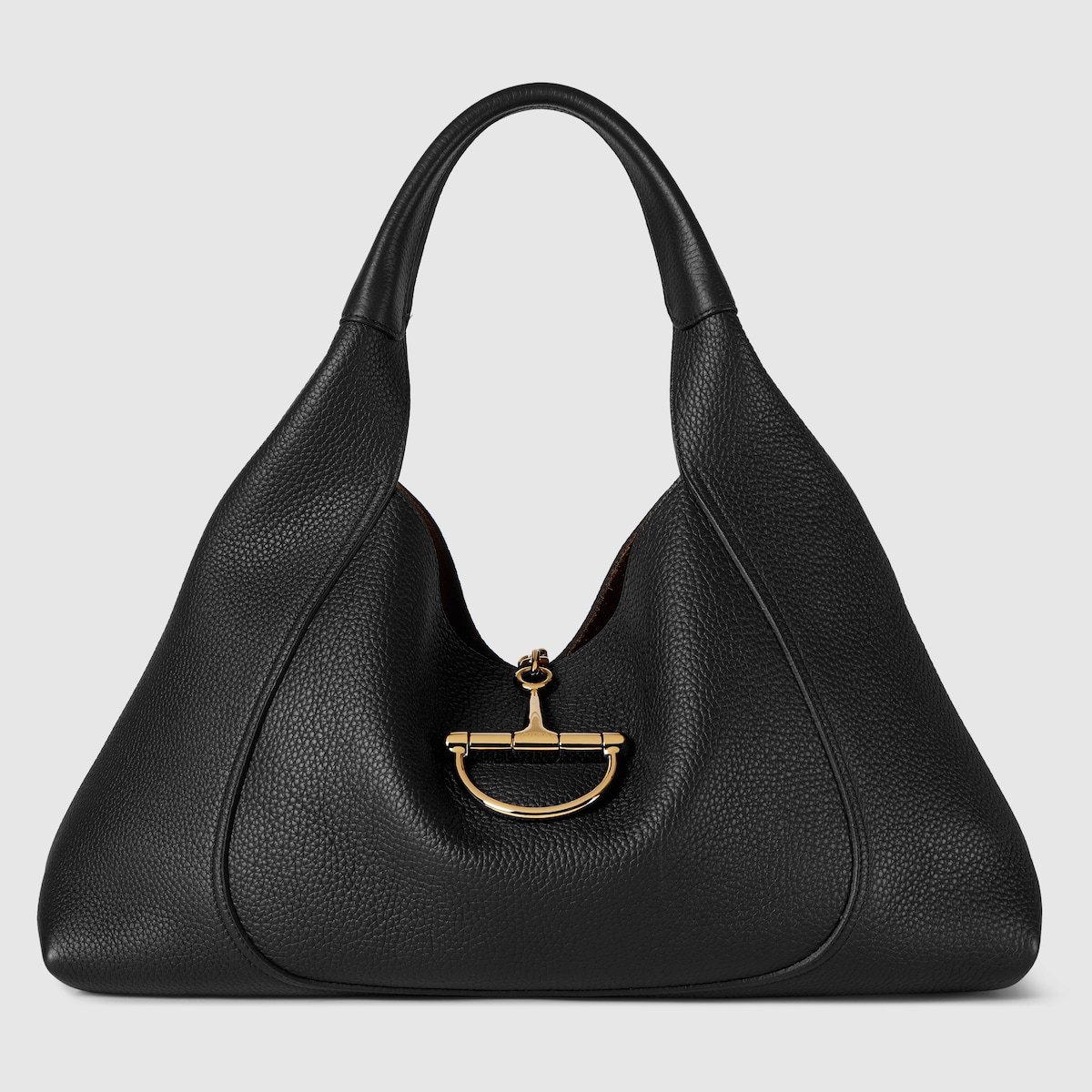The new Gucci Softbit shoulder bag reimagines the House’s signature hardware as an oversized half Horsebit. It is both aesthetic and functional as the magnetic closure of the relaxed silhouette, crafted from supple, grainy leather with a rich texture.