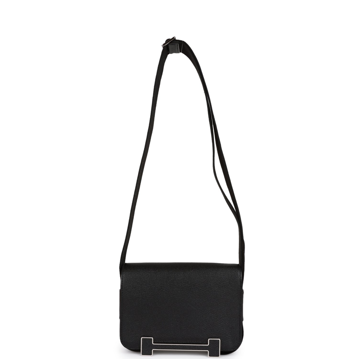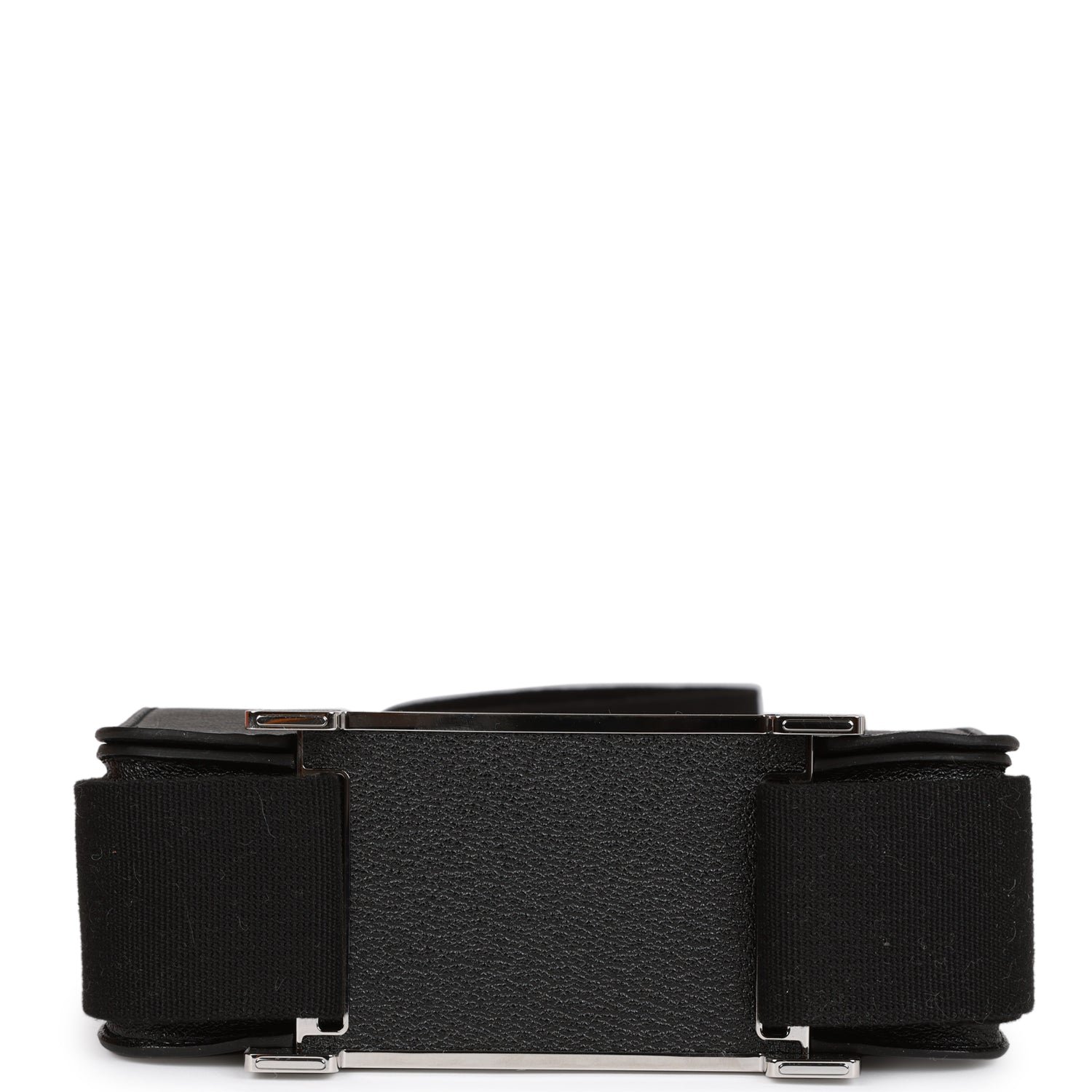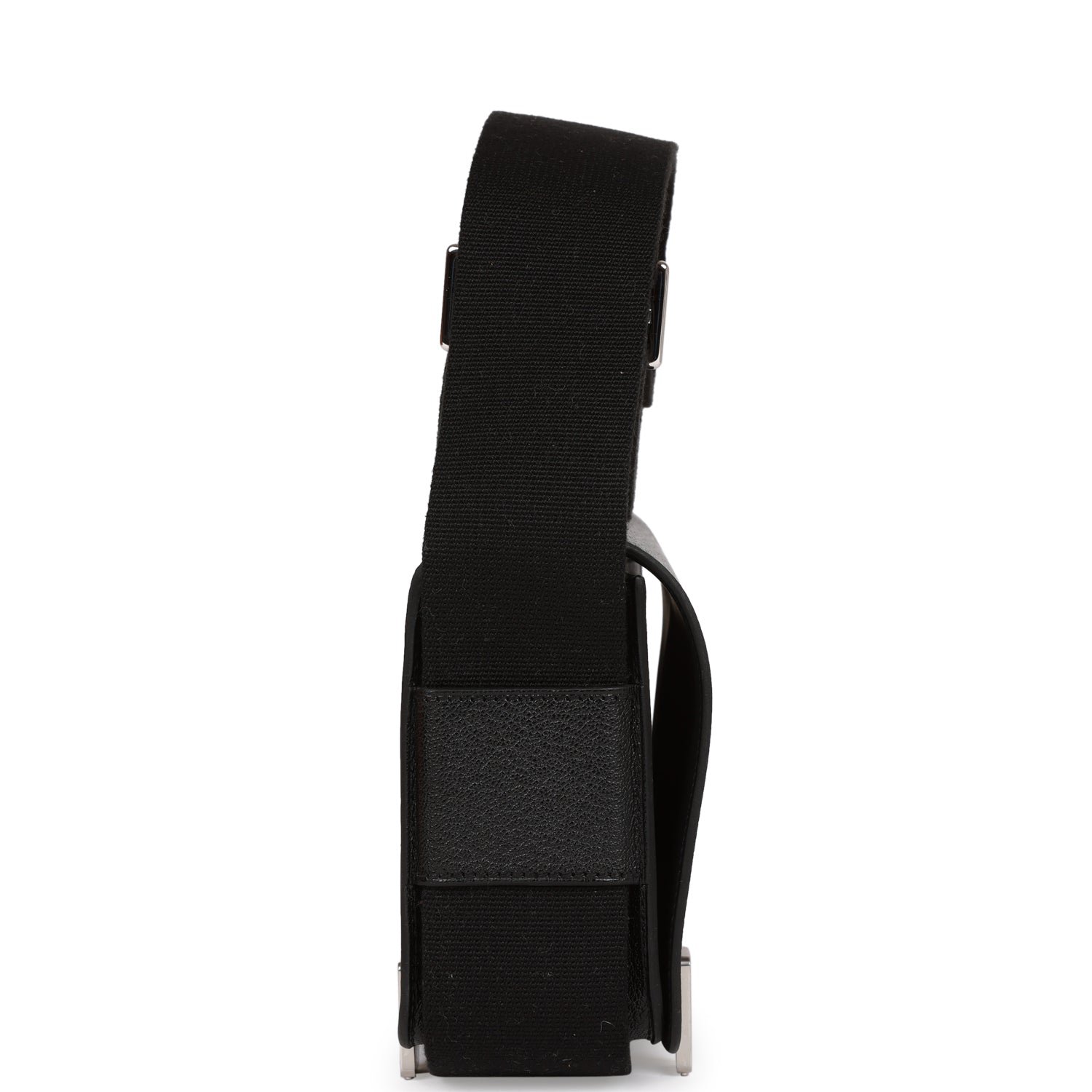 This Geta is in Black chevre leather with palladium hardware and has tonal stitching. magnetic flap closure and adjustable shoulder strap.