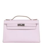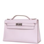 Hermès Kelly Pochette Mauve Pale Swift Palladium Hardware