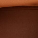 The interior is lined in gold chevre and has one zip pocket with Hermes engraved pull and two open pockets on the opposite side.