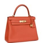 Hermès Kelly Retourne 28 Orange Togo Gold Hardware