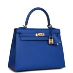 Hermès Kelly Sellier 25 Bleu Royal Epsom Gold Hardware