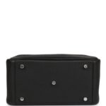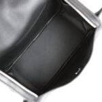 The interior is lined with Black chevre leather and has two side interior pockets and two exterior pockets.