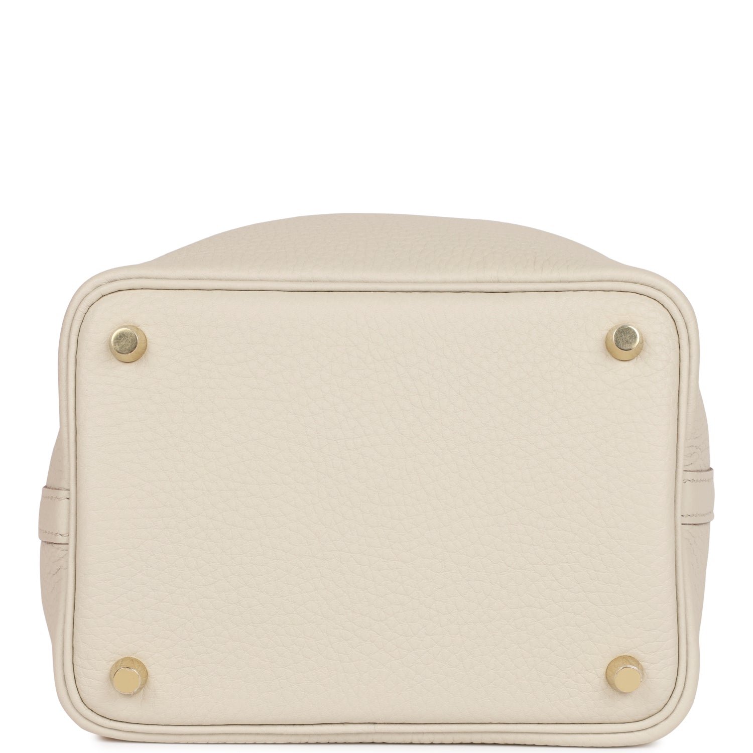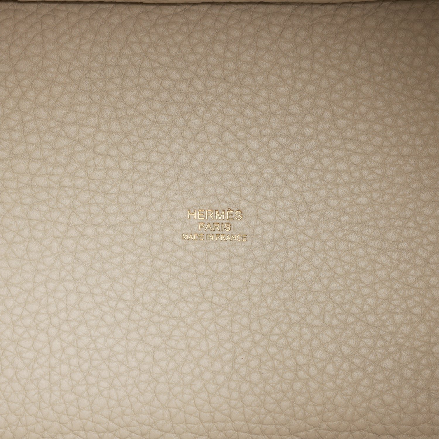 This Picotin is in Beton clemence leather with gold hardware and has tonal stitching with two top handles.