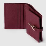 Inspired by the Jackie 1961, this card case wallet highlights the exceptional craftsmanship and sleek silhouette of one of the House’s most signature designs. The piston detail decorates the front of this Rosso Ancora red leather accessory, while the inside features multiple compartments.