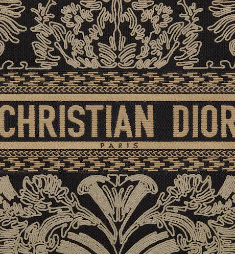 LARGE DIOR BOOK TOTE Black and White Ornamental Cornely-Effect Embroidery (42 x 35 x 18.5 cm)