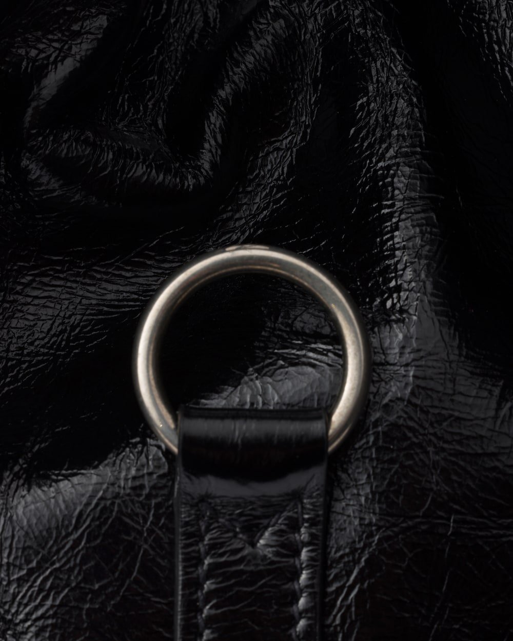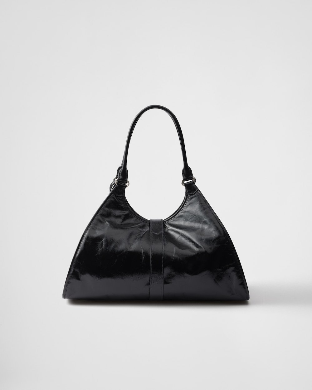 Geometric lines and refined artisan details define this bag with oversized volumes. The soft trapezoidal silhouette in leather is characterized by a delicate glossy finish with a vintage effect. The vertical clasp inspired by the archives and the leather mirror complete the accessory with a sophisticated note.