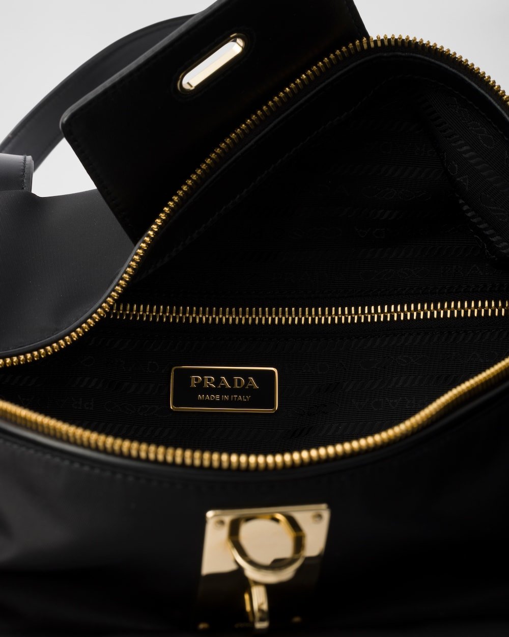 - Logo-print Re-Nylon interior with double zipper pocket