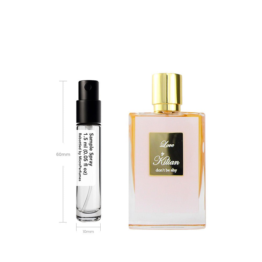 Love. don’t be shy (Eau de Parfum) by Kilian is a fragrance for women. introduced in 2007. It opens with bright. spicy notes. moves to lush. floral accords. and settles on warm. sweet tones for a romantic. indulgent signature. This scent is perfect for cooler seasons and intimate evenings. enveloping the wearer in a comforting yet alluring aura. Our 1.5 ml sample spray provides 20-25 sprays. making it an ideal option for several days of testing or travel.