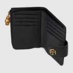This medium wallet in black leather features a bamboo zip closure, paying homage to a material at the heart of Gucci’s heritage. Designed with plenty of interior slots and a zip pocket, the accessory is completed by a gold-toned Double G monogram hardware on the snap button closure.