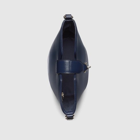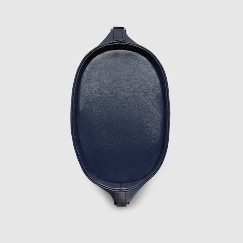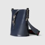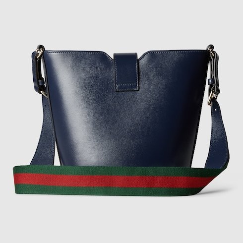 This mini bucket shoulder bag is crafted in blue leather. This accessory is a perfect blend of functionality and modernity thanks to the design with hook closure and a Web shoulder strap.