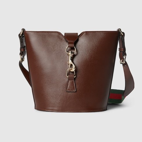 This mini bucket shoulder bag is crafted in brown leather. This accessory is a perfect blend of functionality and modernity thanks to the design with hook closure and a Web shoulder strap.
