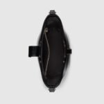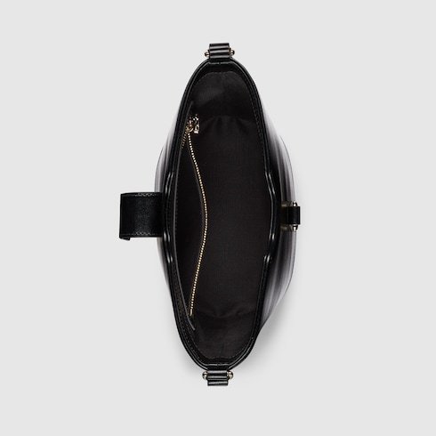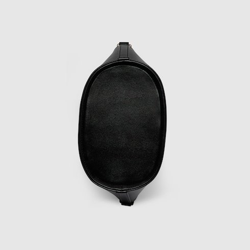 This mini bucket shoulder bag is crafted in black leather. This accessory is a perfect blend of functionality and modernity thanks to the design with hook closure and a Web shoulder strap.
