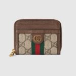 The world of Ophidia is enriched by the introduction of a petite card case that can also be used as a wallet. Crafted from the House’s monogram canvas, the style’s logo appeal is deepened by the green and red Web stripe and the Double G—archival details that celebrate Gucci’s history.