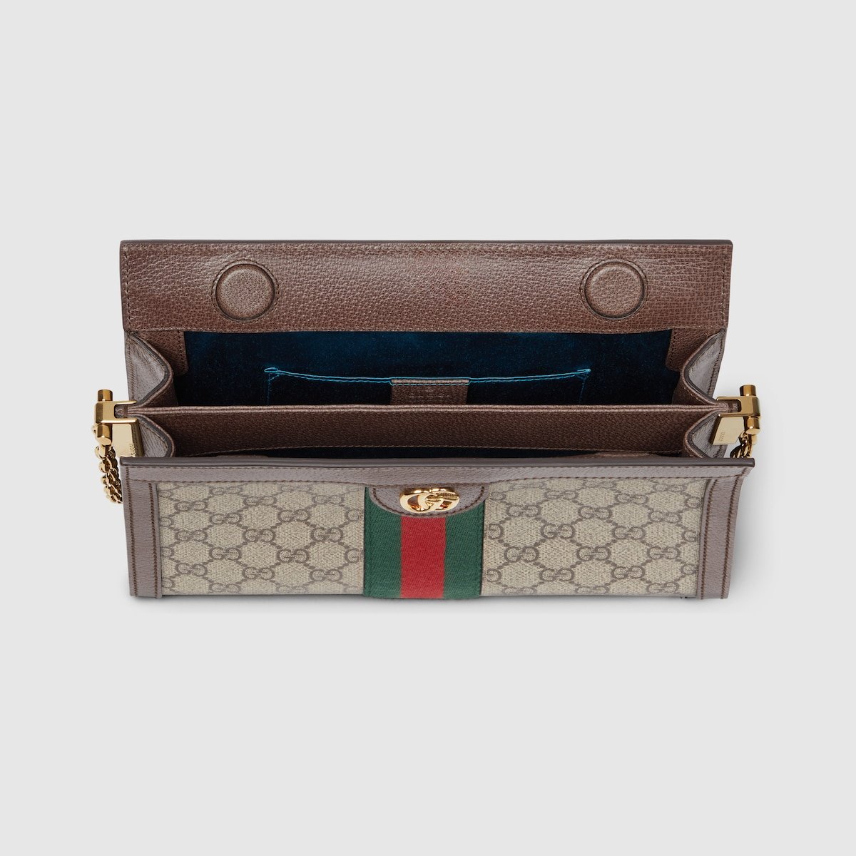 Crafted in GG Supreme canvas with inlaid Web stripe detail, the chain strap shoulder bag boasts a vintage inspired design. The structured shape secures with a magnetic closure, trimmed with leather and Double G hardware—an archival detail.