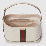 The Ophidia is reinvented in new and unexpected ways in this medium-sized piece, which blends the open bucket design and shoulder bag style. It is crafted in the House’s signature GG Supreme canvas in the color combination of beige and white.