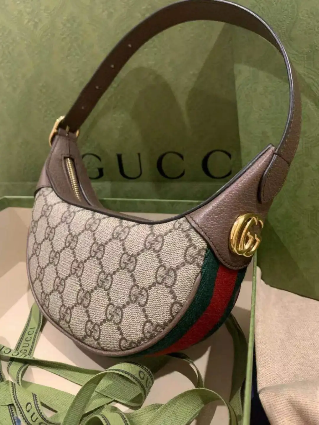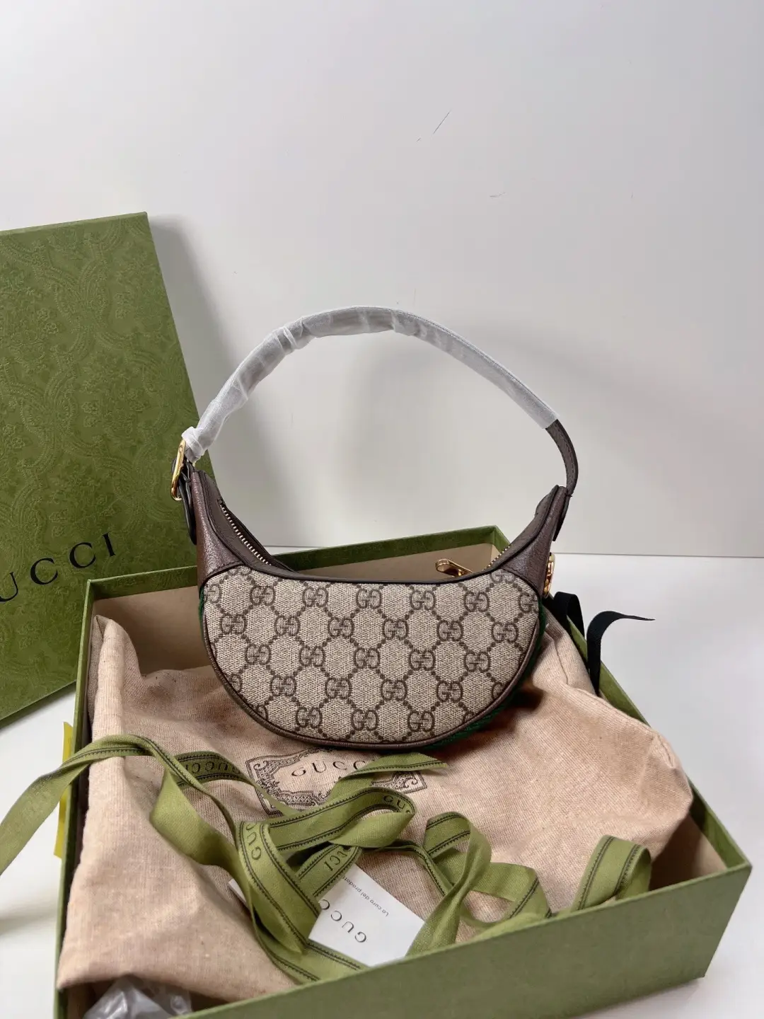 The world of Ophidia is enriched with the introduction of a crescent shaped mini bag. Crafted from the House’s monogram canvas, the half-moon silhouette is infused with a retro spirit, recalling ’90s designs.