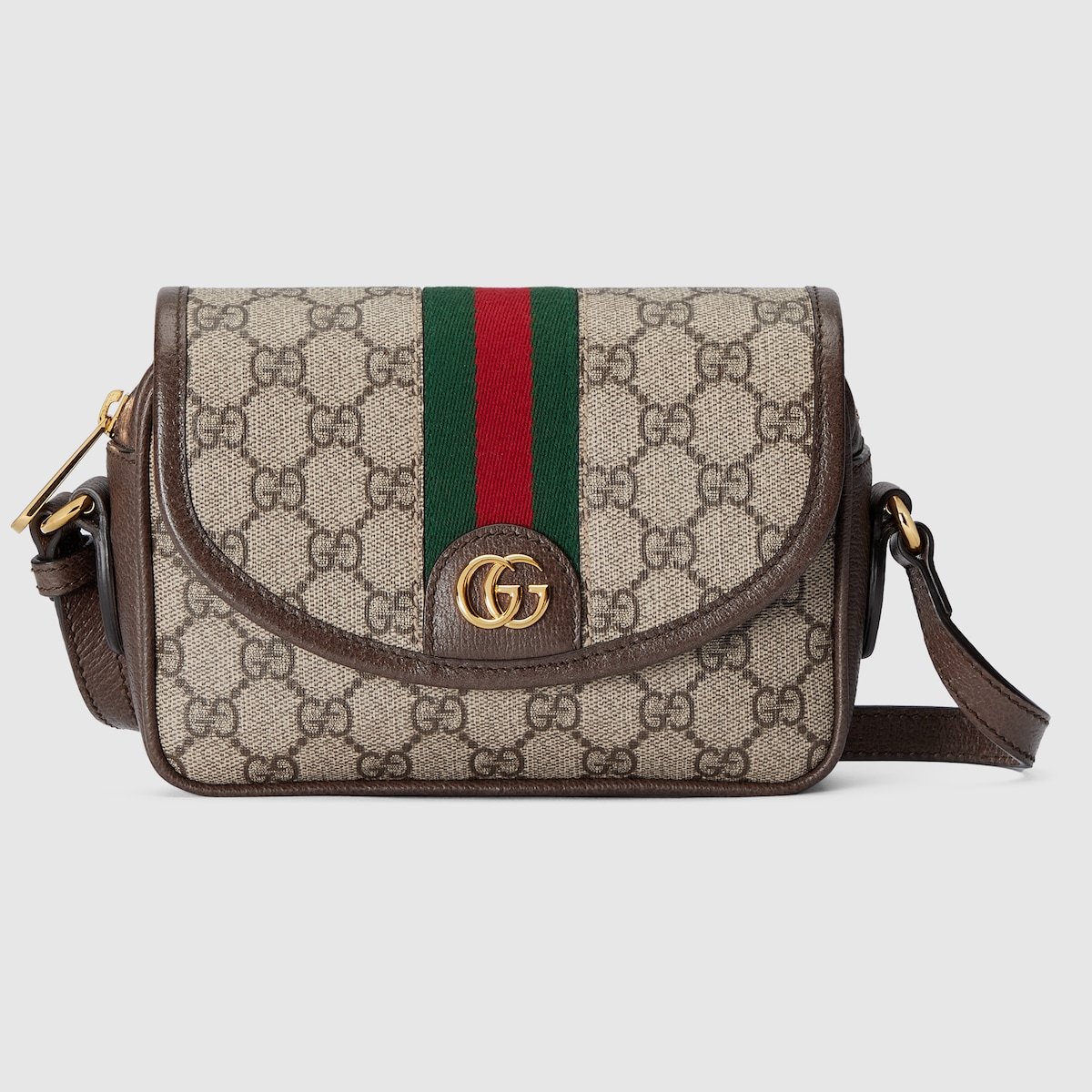 Guccio Gucci’s everlasting monogram continues to enrich new designs with a logo feel. This Ophidia mini shoulder bag is presented in a beige and ebony, complete with the Web stripe.