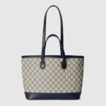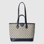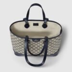 The Ophidia line is further elevated through new sizes and styles, including variations with top handles as well as shoulder straps, allowing for versatile wear. The signature Double G hardware completes this beige and blue GG Supreme design.