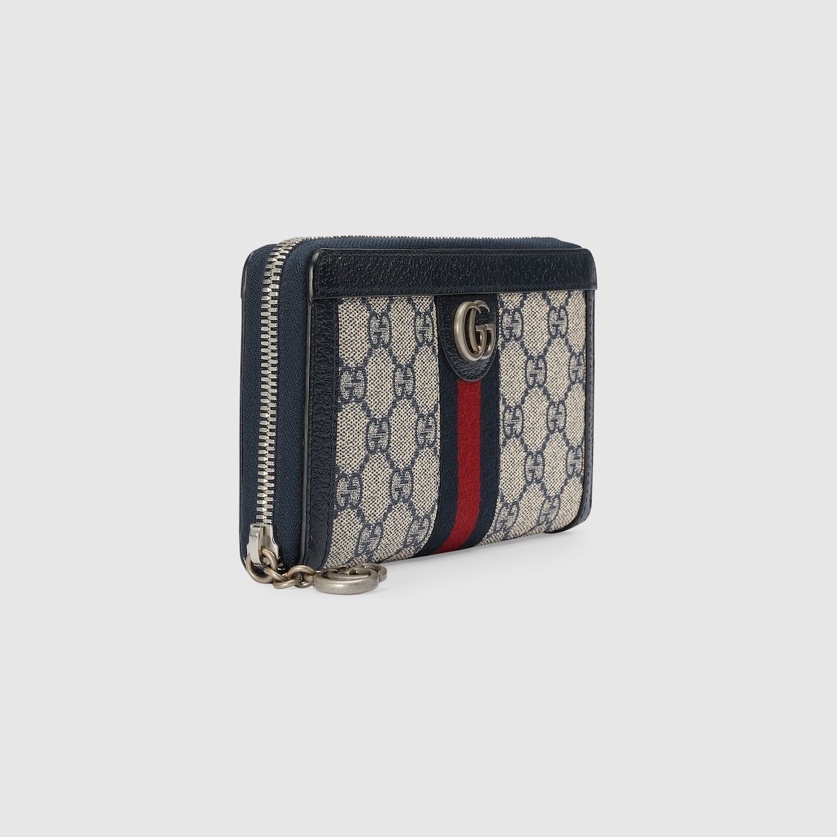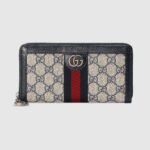 Mirroring the material’s historic origins, GG Supreme is introduced in a timeless mix of blue and beige for Gucci Love Parade. The canvas has come to the front of each collection decade after decade to become a hallmark of the House. Here, the classic palette defines this zip around wallet from the world of Ophidia.
