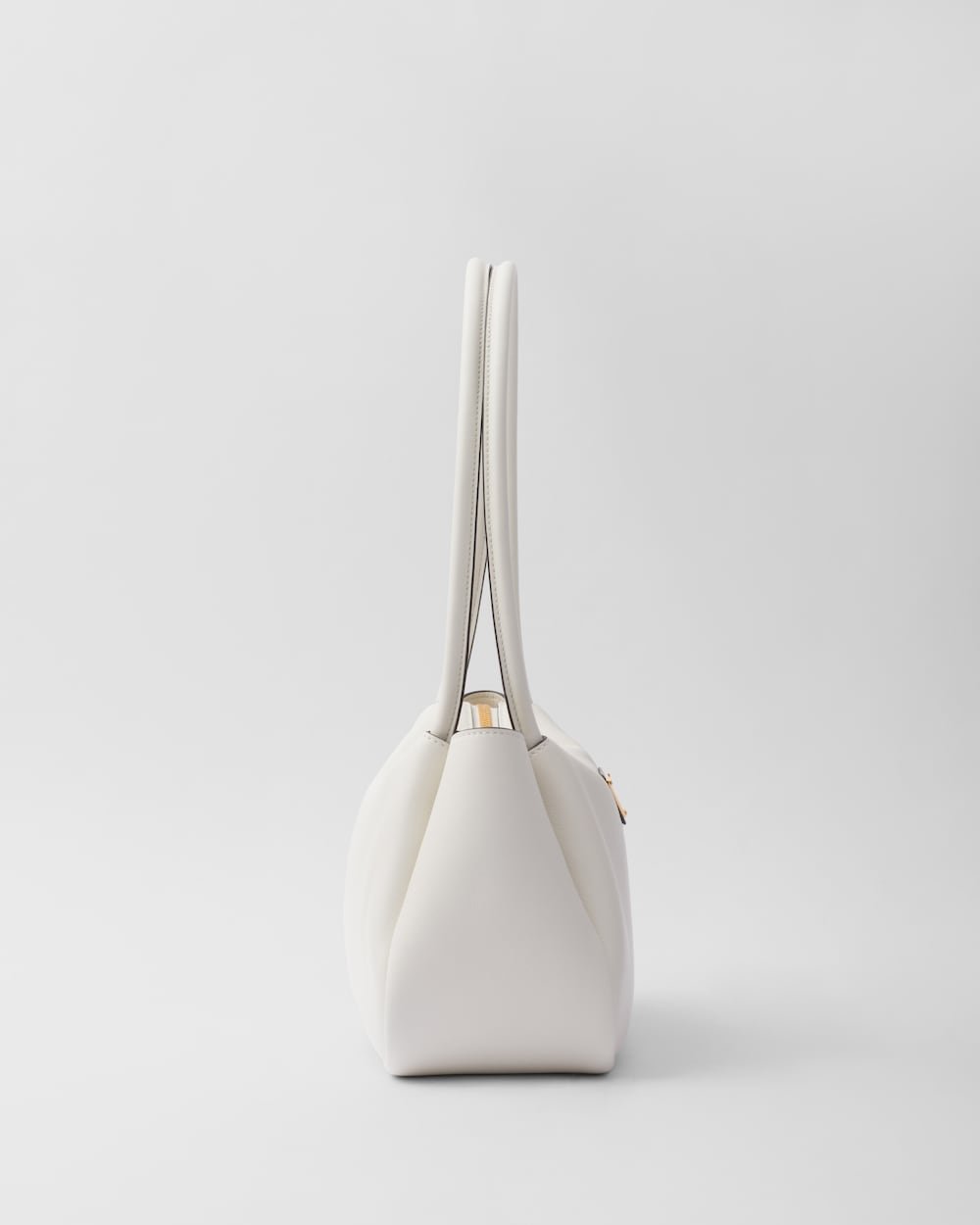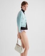 This bag with a sophisticated, contemporary design features simple yet refined details, brightened by the metal hardware. The versatile style has sleek, minimalist lines emphasized by the buttery feel of soft grain leather. The accessory, an expression of exceptional artisanal know-how, is decorated with the iconic enameled metal triangle logo.