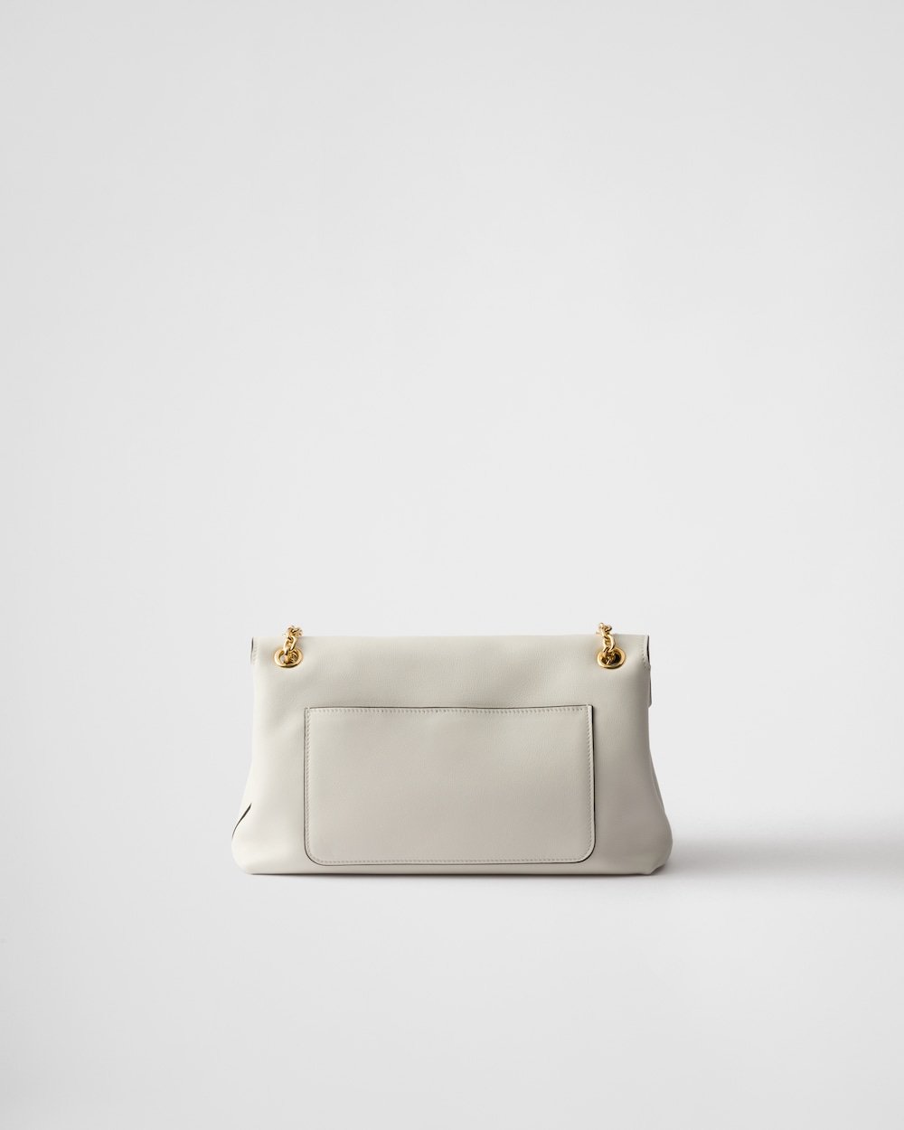This refined and pragmatic shoulder bag combines details with timeless elegance and a silhouette with contemporary volumes emphasized by the soft touch of leather. The style is characterized by sliding chain handles, nappa leather interior, and back pocket. The accessory illuminated by metal hardware is decorated with the elegant lettering logo embossed on the flap.