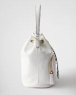 The Prada Duet bucket bag with a soft, contemporary design is made of naplak patent leather that gives the accessory a distinctive shiny effect and texture with vintage allure.