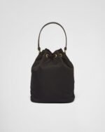The Prada Duet bucket bag with a soft, contemporary shape is made of Prada’s innovative Re-Nylon, a fabric that can be endlessly regenerated, produced from recycled, purified plastic materials collected in the ocean. With an external pocket and enamel triangle logo, the versatile silhouette is designed to be worn both as a handbag and a crossbody bag, thanks to its Saffiano leather handle and shoulder strap.