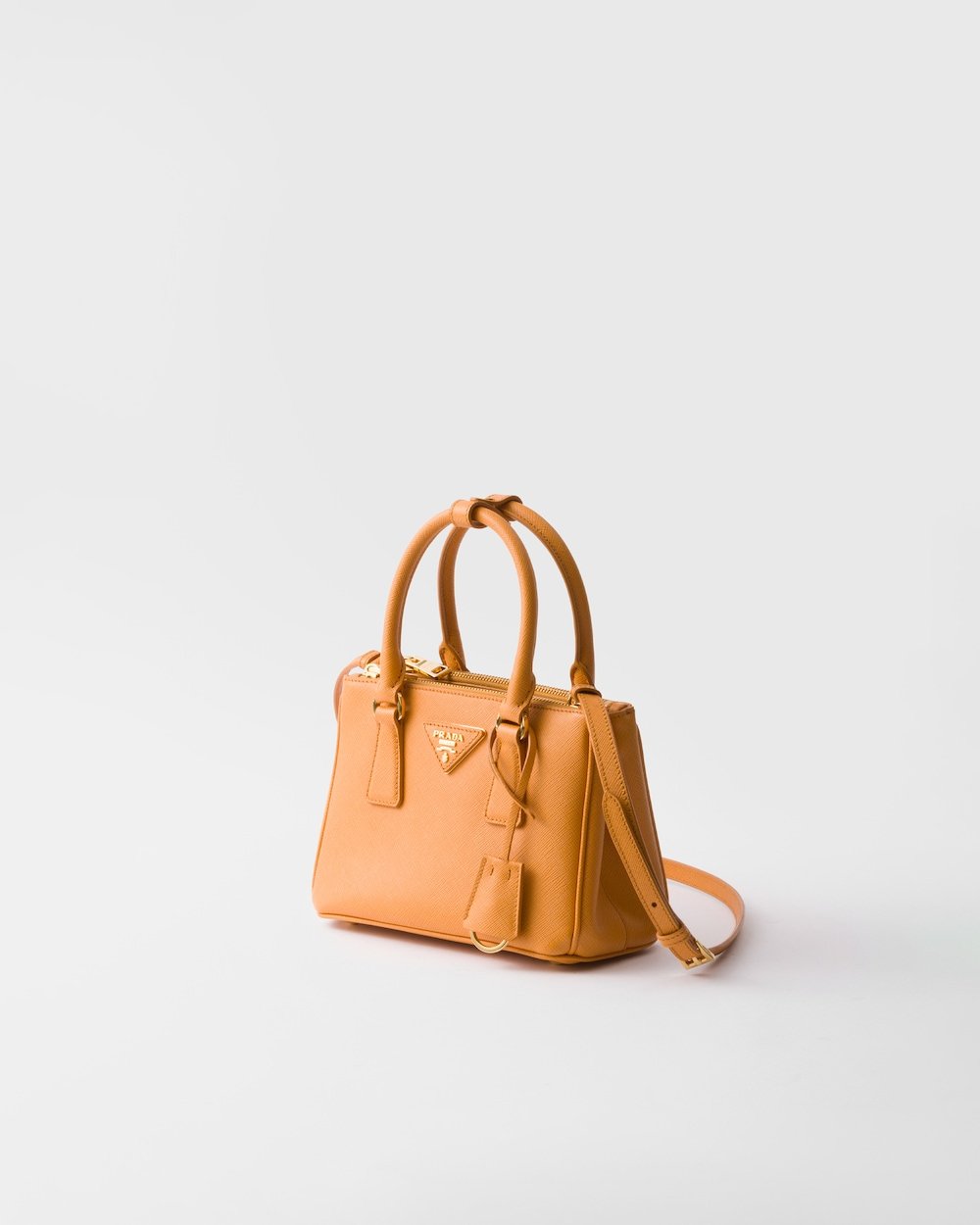 Production of the Prada Galleria bag, composed of 83 pieces, is an authentic fusion between industrial precision and the refined accuracy of craftsmanship that can only be performed by hand. The design is clean and elegant yet innately pragmatic, an aesthetic language blending form and function that combines history and modernity. Originating the definition of “timeless”, the Galleria bag has become a hallmark of Prada’s identity in the twenty-first century. The accessory, presented in the mini version, is made of iconic Saffiano leather that was patented by the founder of the brand and features a crosshatch texture and waxed finish.