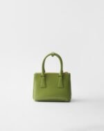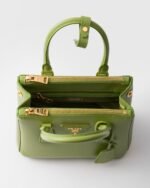 Production of the Prada Galleria bag, composed of 83 pieces, is an authentic fusion between industrial precision and the refined accuracy of craftsmanship that can only be performed by hand. The design is clean and elegant yet innately pragmatic, an aesthetic language blending form and function that combines history and modernity. Originating the definition of “timeless”, the Galleria bag has become a hallmark of Prada’s identity in the twenty-first century. The accessory, presented in the mini version, is made of iconic Saffiano leather that was patented by the founder of the brand and features a crosshatch texture and waxed finish.