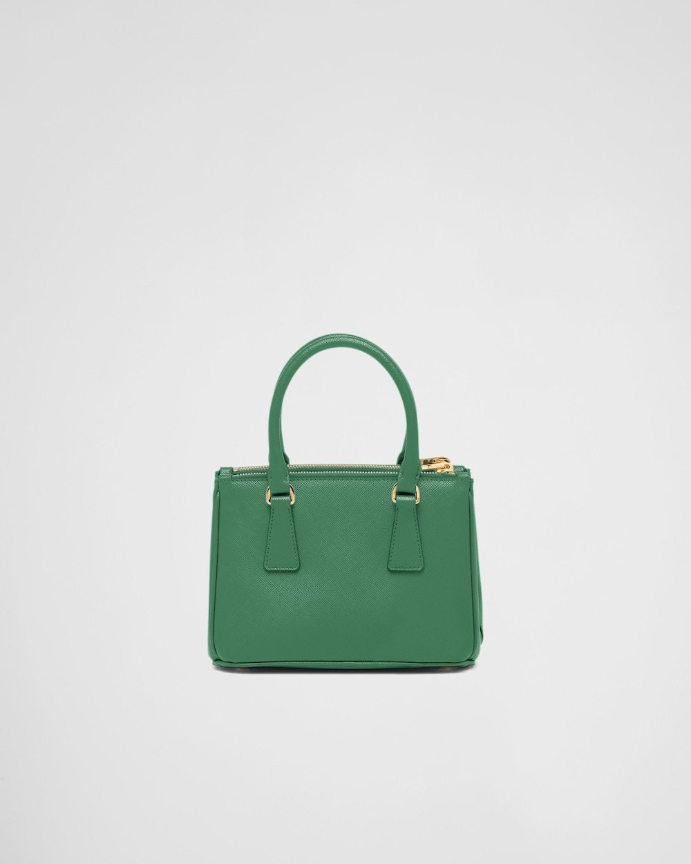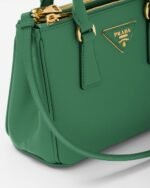 Production of the Prada Galleria bag, composed of 83 pieces, is an authentic fusion between industrial precision and the refined accuracy of craftsmanship that can only be performed by hand. The design is clean and elegant yet innately pragmatic, an aesthetic language blending form and function that combines history and modernity. Originating the definition of “timeless”, the Galleria bag has become a hallmark of Prada’s identity in the twenty-first century. The accessory, presented in the mini version, is made of iconic Saffiano leather that was patented by the founder of the brand and features a crosshatch texture and waxed finish.