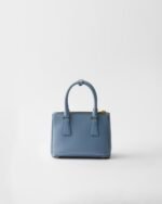 Production of the Prada Galleria bag, composed of 83 pieces, is an authentic fusion between industrial precision and the refined accuracy of craftsmanship that can only be performed by hand. The design is clean and elegant yet innately pragmatic, an aesthetic language blending form and function that combines history and modernity. Originating the definition of “timeless”, the Galleria bag has become a hallmark of Prada’s identity in the twenty-first century. The accessory, presented in the mini version, is made of iconic Saffiano leather that was patented by the founder of the brand and features a crosshatch texture and waxed finish.