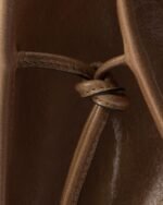 This contemporary and pragmatic tote has a sleek, roomy silhouette and is made of leather with a glossy finish.