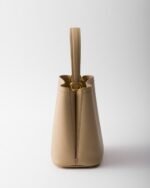 The sleek, geometric silhouette of the Prada Panier bag is reinterpreted in a compact and refined mini version. The accessory made of Saffiano leather, an emblematic material of Prada collections, is embellished with sophisticated details that express artisan excellence.