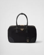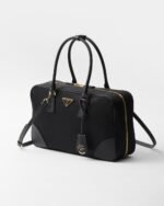 An archive silhouette with timeless appeal is presented in Re-Nylon, the sustainable evolution of a distinctive material of the brand. The two-handle bag made of regenerated nylon is enriched with Saffiano leather details in a perfect synthesis of Prada’s stylistic codes, able to subvert the traditional perception of luxury. Between the pragmatic touches and sophisticated details, the enameled metal triangle logo decorates the spacious accessory with its distinctive signature note.