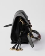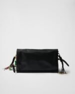 Distinctive and versatile, the new Prada Soft Sound bag is made of soft leather and has a roomy design. The shoulder bag comes with two compartments and has gold-tone metal hardware. Removable pendants brighten the accessory with eclectic, contemporary touches.