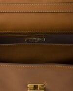 Inspired by rigid, formal work bags, this leather bag is a reinterpretation of the classic office silhouette with a new attitude. The archetypal shape is softened and enriched with sophisticated, feminine details. The vertical clasp, taken from the archives, embellishes the accessory characterized by a long handle that can be worn over the shoulder.