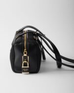 A refined, versatile silhouette that embodies the essence of Prada’s codes, this bag is crafted from Re-Nylon with leather detailing. The gold-toned metal hardware and elegant padlock on the zipper closure add a unique touch to the accessory.