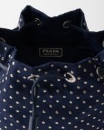 Inspired by an archive design, this mini-bag features a bucket bag silhouette and is crafted from Re-Nylon, an evolution of Prada’s iconic fabric. The refined silhouette is enriched with mini studs that add a contemporary edge to the accessory.